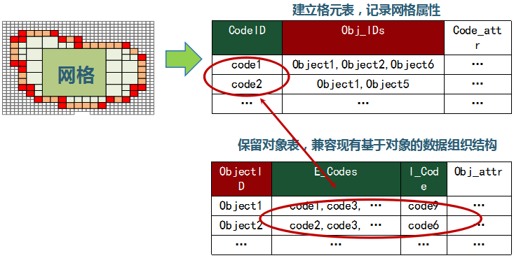 在對現有系統不推倒不重來及保護現有數據庫獨立性的基礎上,充分利用數據中的“空間位置”屬性,增加北斗網格編碼字段,作為ID對各種數據進行統一標識,并以其為紐帶構建對象內在的時空關聯關系,建立編碼動態索引,實現大數據統一組織與高效查詢。同時,利用網格編碼一維、整型、二進制的特點,實現時空大數據的計算、傳輸、分發、服務等應用的高效“編碼化操作”。